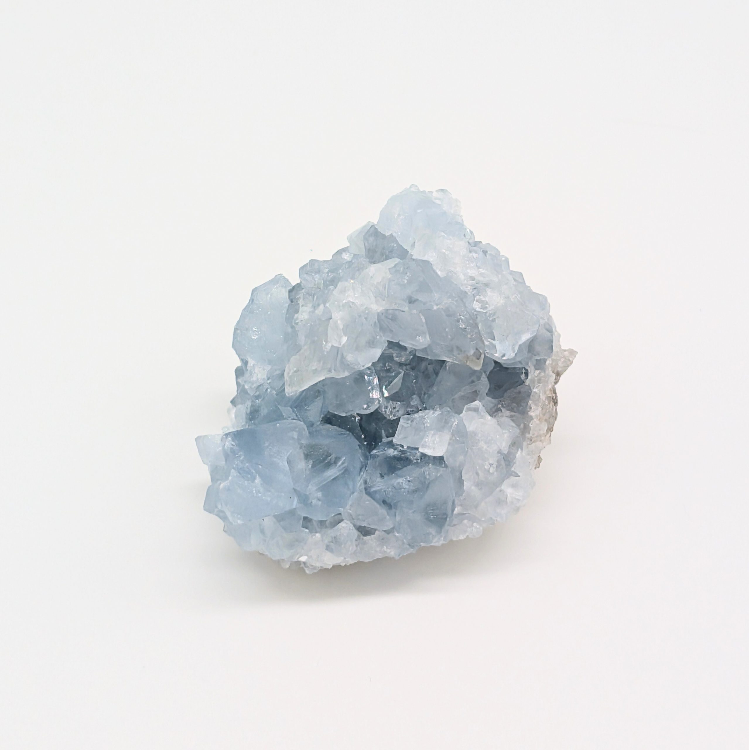 La célestine est une pierre précieuse réputée en lithothérapie pour ses propriétés apaisantes et spirituelle. Elle est associée à la tranquillité mentale, aide à réduire le stress et l’anxiété, elle est également liée à la communication spirituelle, favorisant la connexion avec les royaumes supérieurs et l’intuition.