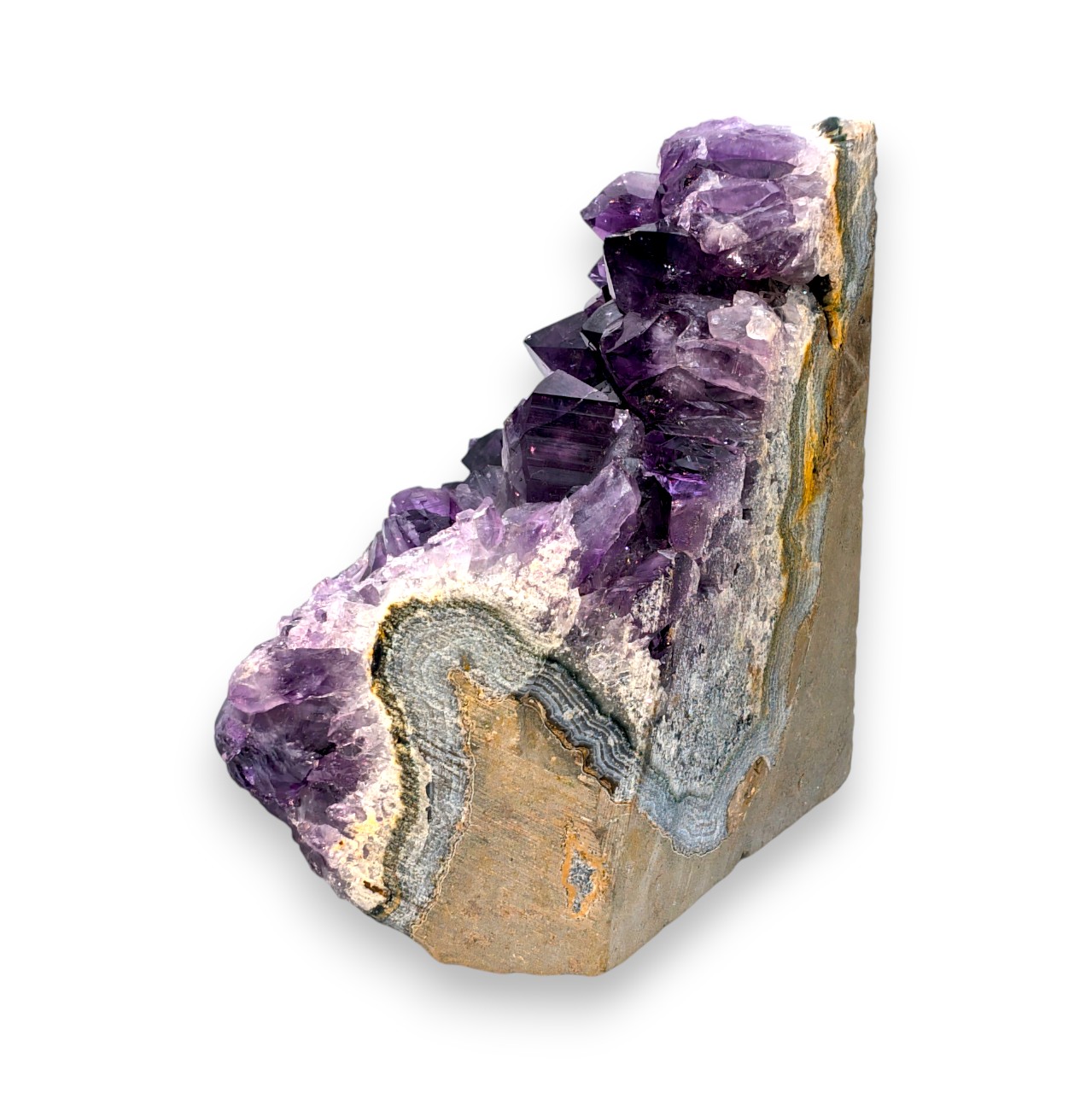 Découvrez une véritable pièce de collection avec cette magnifique géode d’améthyste de 1335 grammes. Ses cristaux étincelants aux nuances de violet profond en font un trésor naturel.