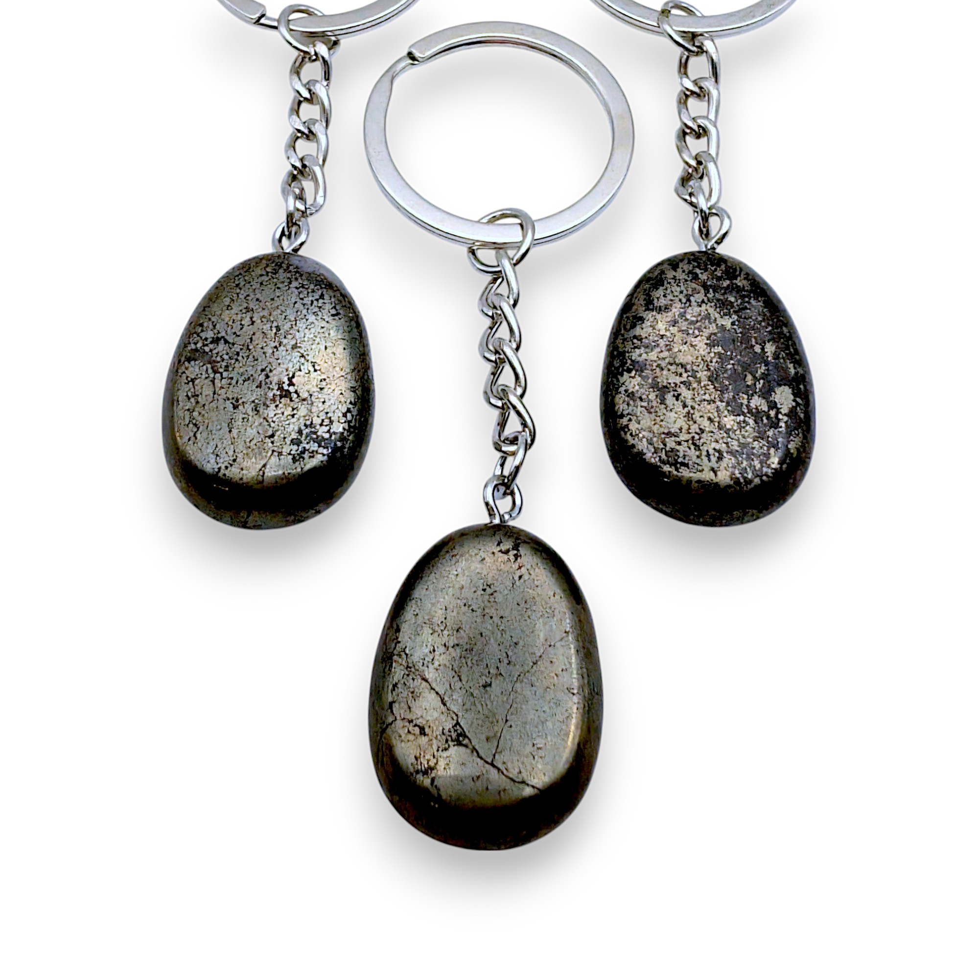 Reconnue pour ses propriétés protectrices et énergisantes, la pyrite est également un symbole d’abondance et de prospérité. Chaque porte clés est unique avec son doré naturel qui varie d’une pierre à l’autre. Ce porte clés est proposé à un prix tout doux, pour allier qualité, bien-être et esthétique, parfait pour un usage quotidien ou pour offrir un cadeau précieux et significatif.